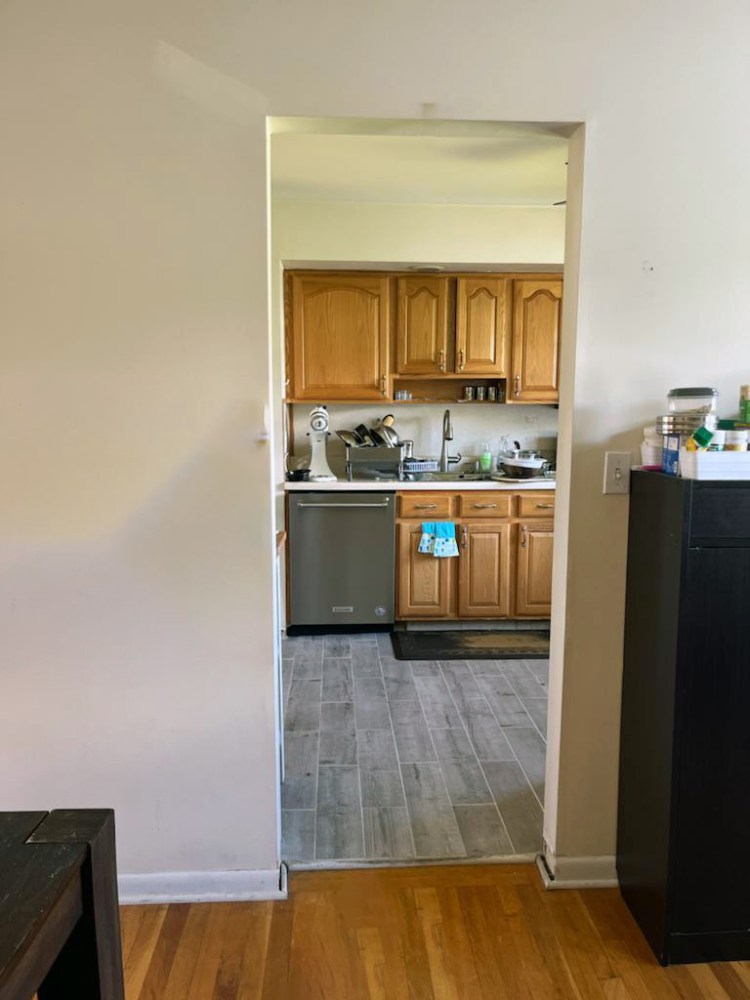This project involved a split-level home in Secaucus, NJ, for a family of three. The existing galley kitchen presented significant challenges: it severely lacked counter space, featured an awkward layout, and had a refrigerator inconveniently located at the top of a stair landing, impeding circulation between the living and family rooms. As the homeowners loved to cook, the uninspiring layout was a major pain point.